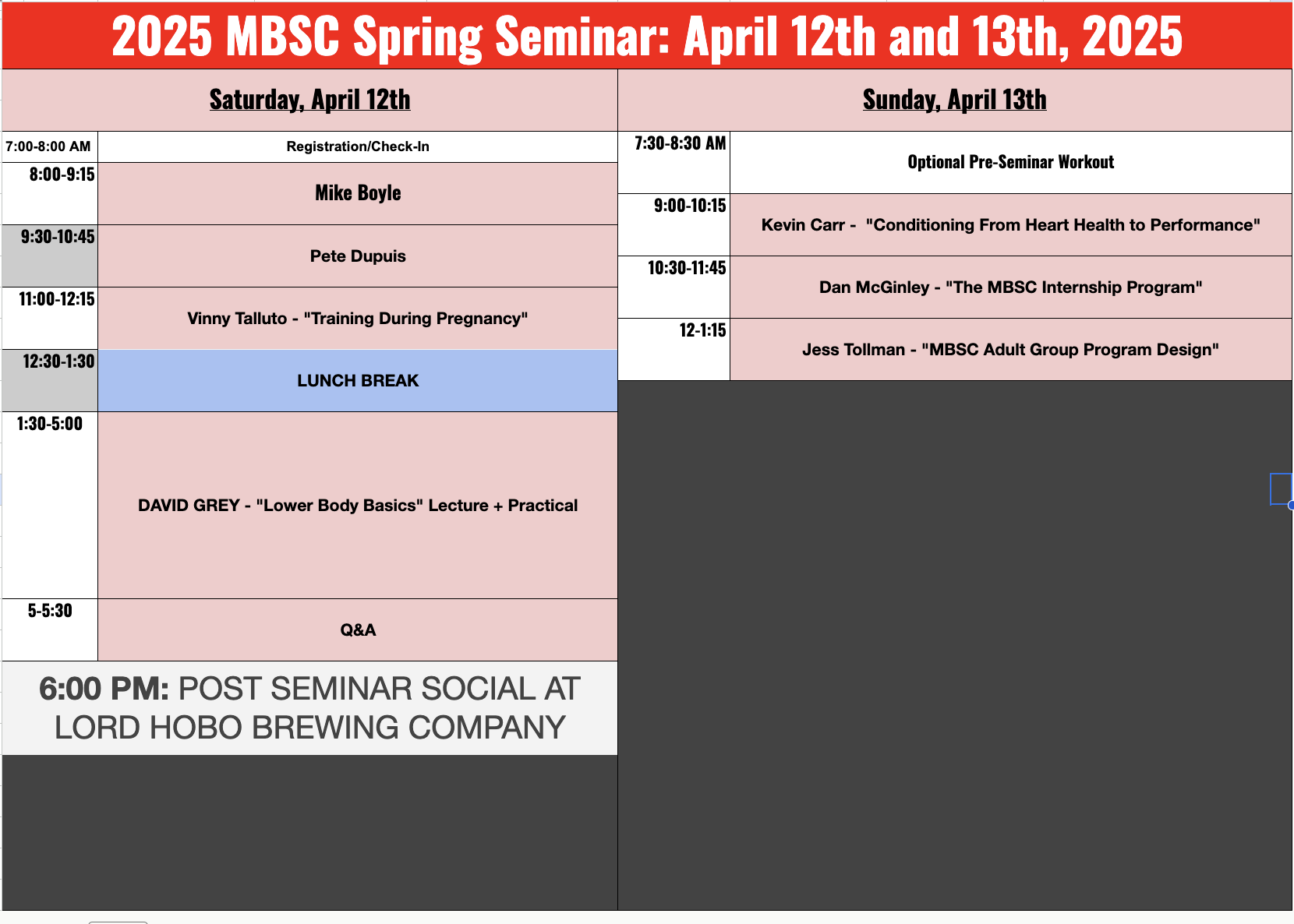 2026 MBSC Spring Seminar – April 11th – 12th, 2026